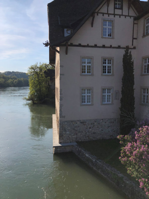 Der Kurstag wird für gewöhnlich im geschichtsträchtigen Klostergebäude der Musikinsel Rheinau, befindlich im Kanton Zürich (siehe Karte ganz unten an der Webseite; problemlos mit ÖV erreichbar), im Sitzungszimmer durchgeführt, welches wunderbaren Stuck an der Decke aufweist. Wir bewegen uns jedoch auch auf der Musikinsel selbst, sofern das Wetter und die Voraussetzungen der Teilnehmenden es zulassen. Unser Schreibraum, wie verschiedentlich hier auf der Seite abgebildet, befindet sich mitten im historischen Klostergebäude und bietet eine traumhafte Aussicht auf den blauen Rhein und die gegenüberliegende bewaldete Uferseite. Geschrieben wird an einem grossen, schönen, alten Holztisch in der Mitte des Raumes – die perfekte inspirierende Umgebung und Atmosphäre fürs Schreiben. Wenn das Wetter warm und sonnig ist, werden wir auch draussen in der Natur Zeit schreibend verbringen, im angrenzenden üppigen Park auf der Insel oder am idyllischen Rheinufer. » Zur Anreise |